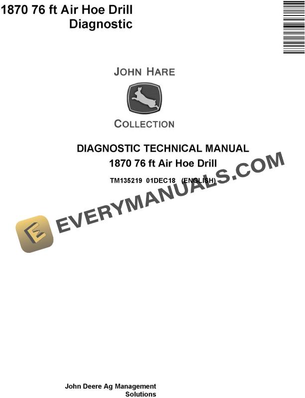 John Deere 1870 76 ft Air Hoe Drill Diagnostic Technical Manual TM135219
