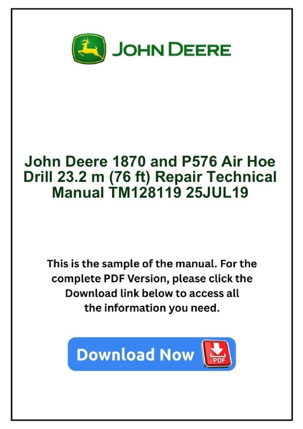 John Deere 1870 and P576 Air Hoe Drill 23.2 m (76 ft) Repair Technical Manual TM128119 25JUL19 by manualgroup - Issuu