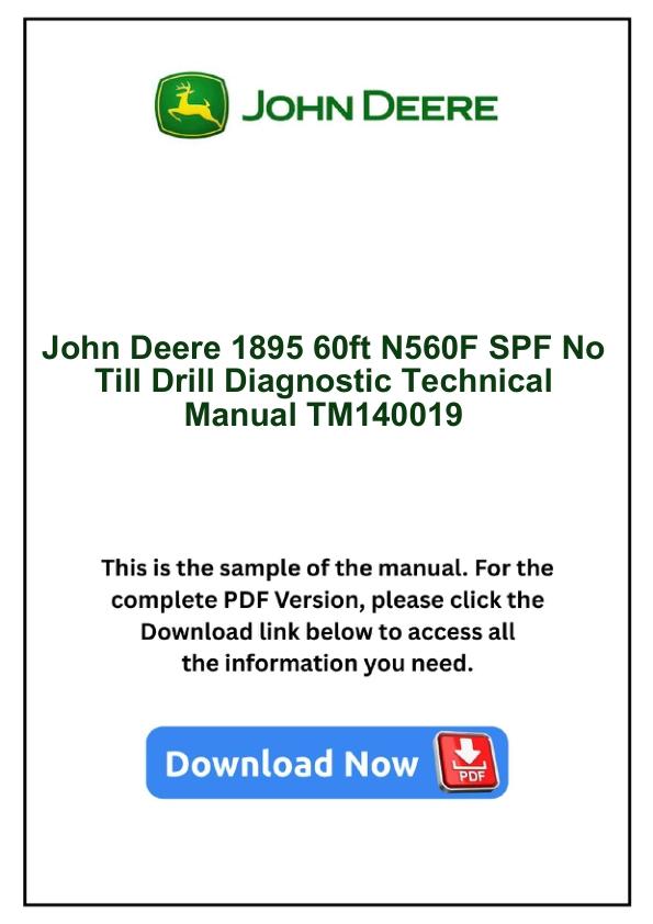 John Deere 1895 60ft N560F SPF No Till Drill Diagnostic Technical Manual TM140019 by manualgroup - Issuu