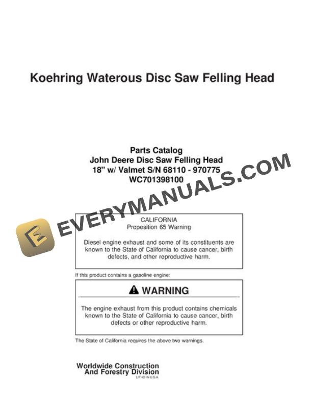 John Deere 18 Inch Dtt Disc Saw Felling Head Parts Catalog WC701398100