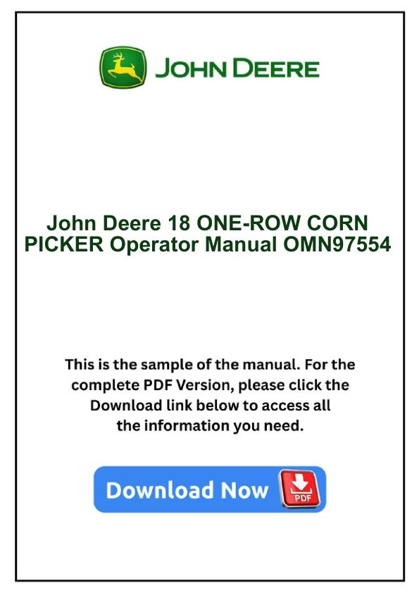 John Deere 18 ONE-ROW CORN PICKER Operator Manual OMN97554