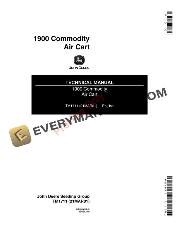 John Deere 1900 Commodity Air Cart Technical Manual TM1711 21MAR01