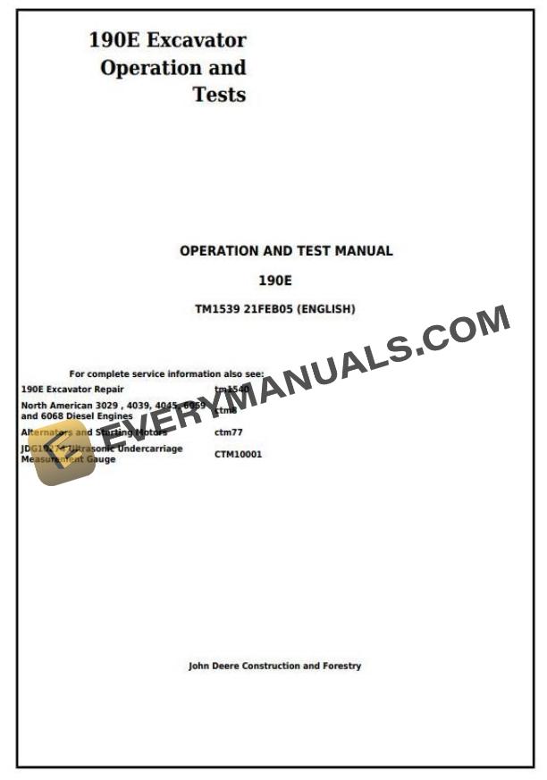 John Deere 190E Excavator Operation Test Manual TM1539 by manualgroup - Issuu