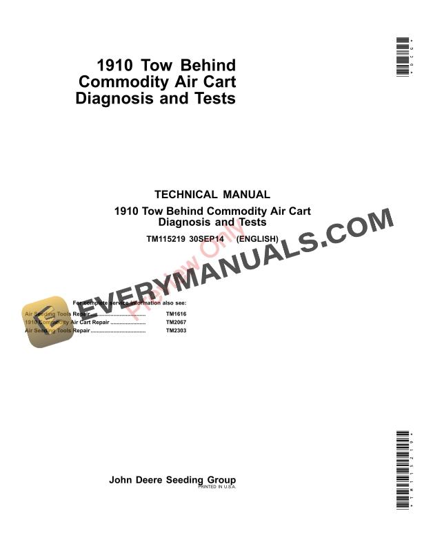 John Deere 1910 Tow-Behind Commodity Air Carts Service Information TM115219 30SEP14