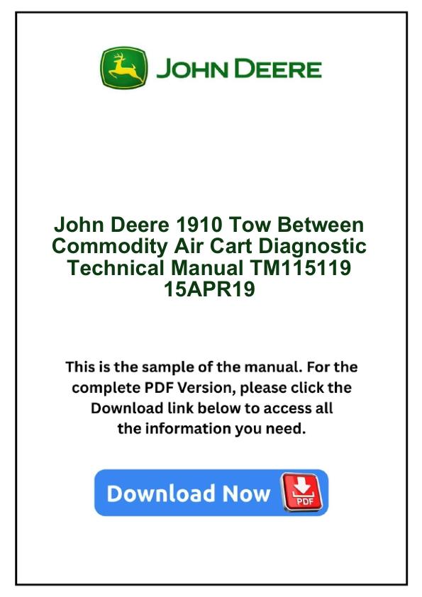 John Deere 1910 Tow Between Commodity Air Cart Diagnostic Technical Manual TM115119 15APR19