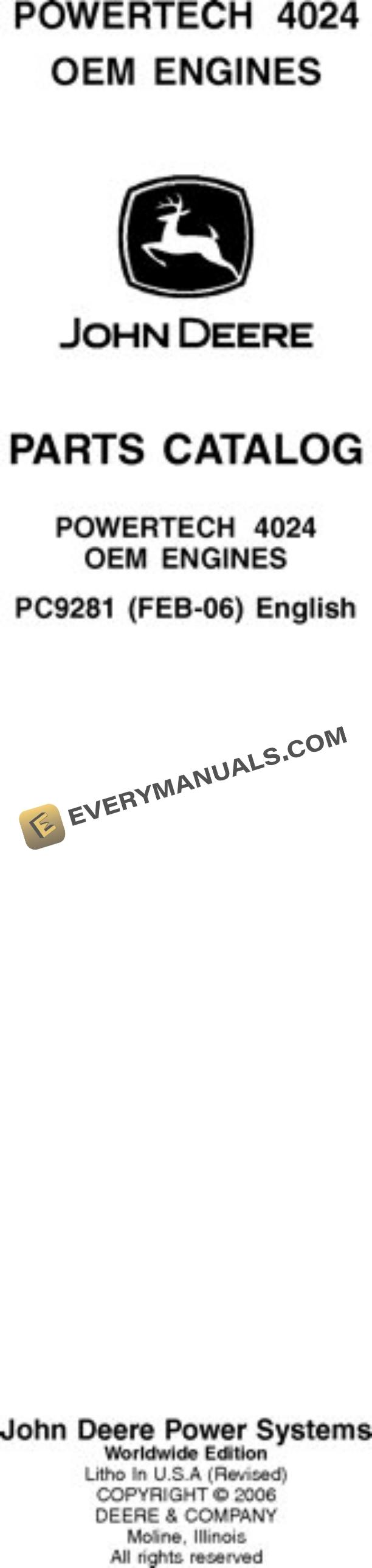 John Deere 2.4L 4024TF220 4024TF270 Engine Parts Catalog PC9281