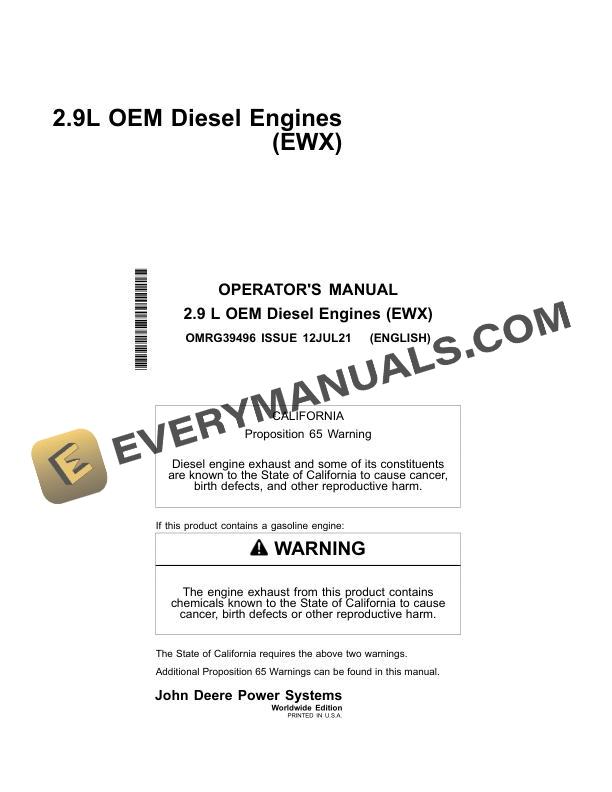 John Deere 2.9L OEM Diesel Engine (EWX) Operator Manual OMRG39496 by manualgroup - Issuu
