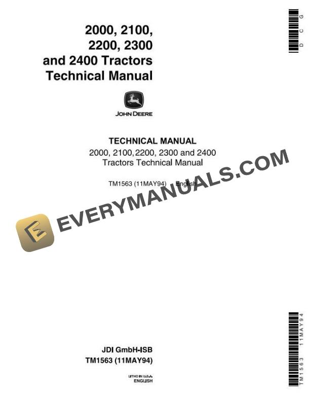 John Deere 2000 2100 2200 2300 2400 Tractor Technical Manual TM1563