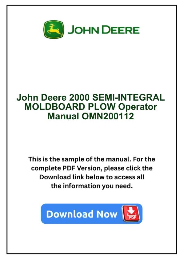 John Deere 2000 SEMI-INTEGRAL MOLDBOARD PLOW Operator Manual OMN200112 by manualgroup - Issuu