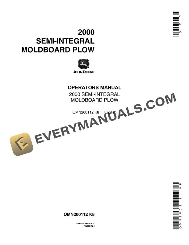 John Deere 2000 SEMI-INTEGRAL MOLDBOARD PLOW Operator Manual OMN200112