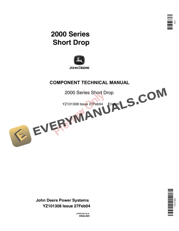 John Deere 2000 Series Short Drop Powershift Transmission Component Technical Manual YZ101308 27FEB0