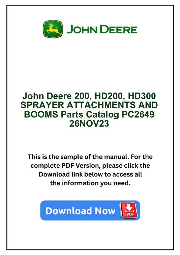 John Deere 200, HD200, HD300 SPRAYER ATTACHMENTS AND BOOMS Parts Catalog PC2649 26NOV23 by manualgroup - Issuu
