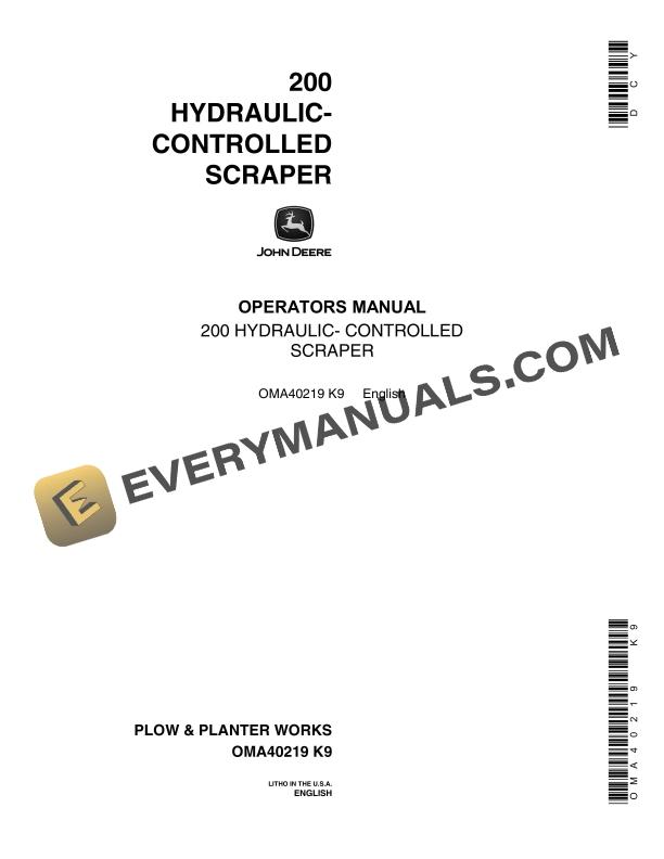 John Deere 200 HYDRAULIC- CONTROLLED SCRAPER Operator Manual OMA40219