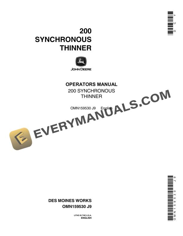 John Deere 200 SYNCHRONOUS THINNER Operator Manual OMN159530