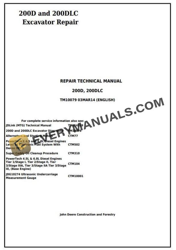 John Deere 200D 200DLC Excavator Repair Technical Manual TM10079