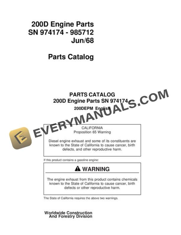 John Deere 200D Skidder Parts Catalog 200DEPM