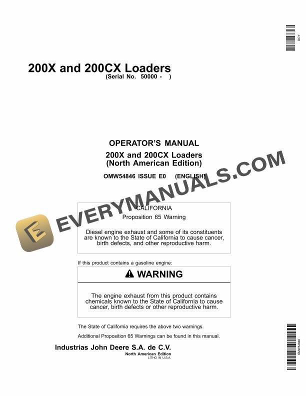John Deere 200X and 200CX Loader Operator Manual OMW54846