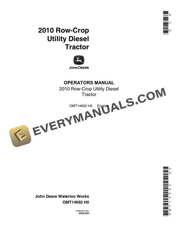 John Deere 2010 Row-Crop Utility Diesel Tractor Operator Manual OMT14692
