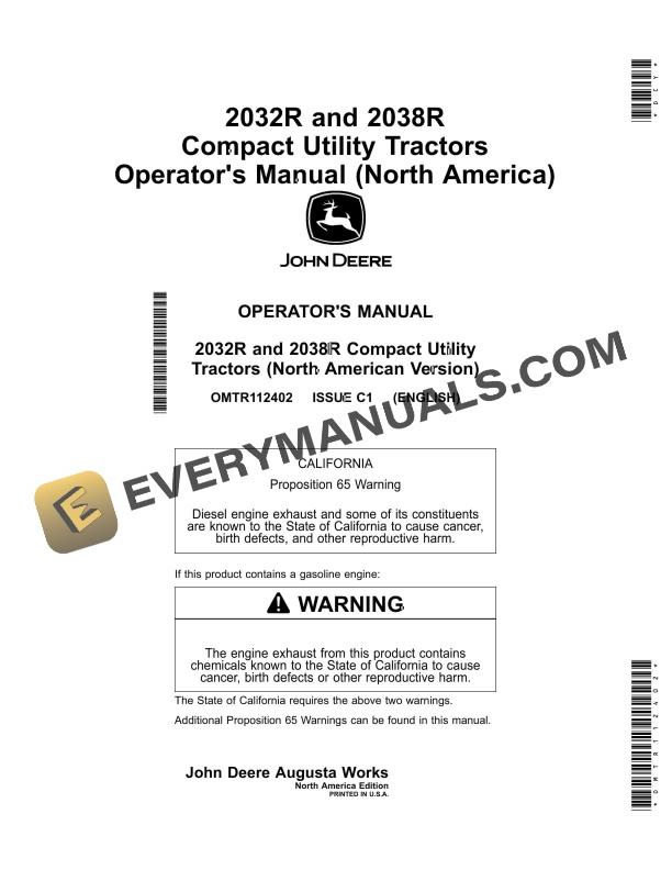 John Deere 2032R and 2038R Tractor Operator Manual OMTR112402