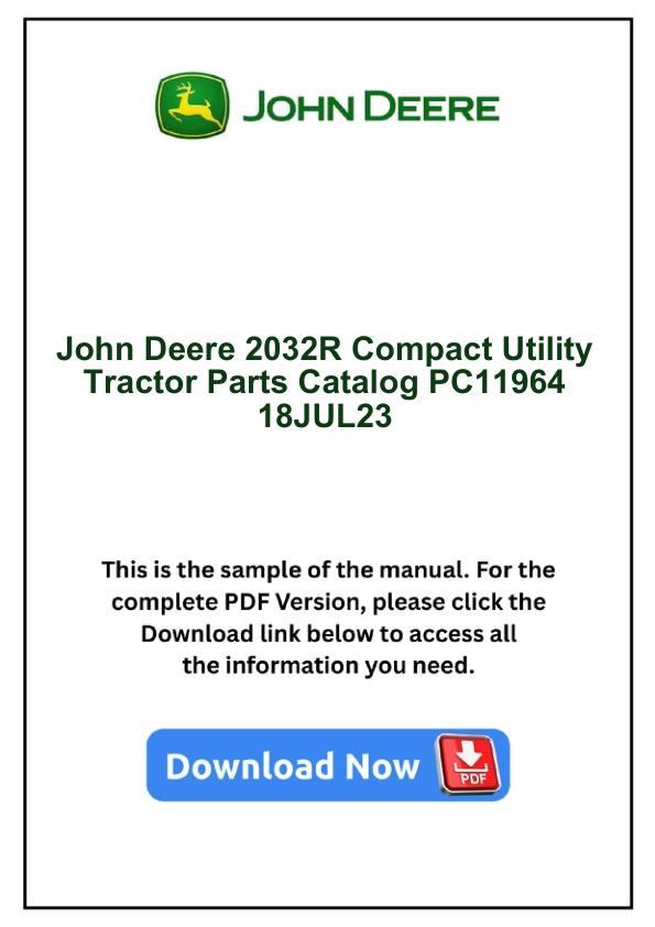 John Deere 2032R Compact Utility Tractor Parts Catalog PC11964 18JUL23 by manualgroup - Issuu