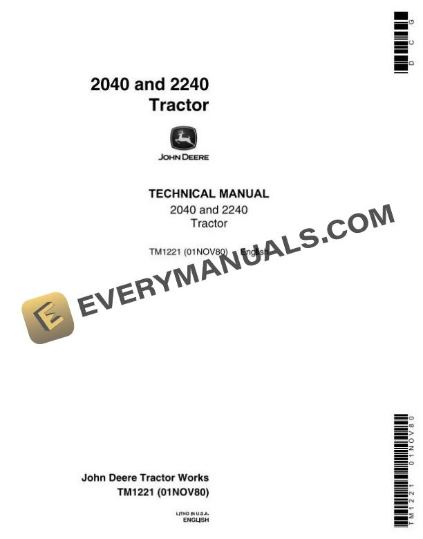 John Deere 2040 2240 Tractor Technical Manual TM1221 PDF