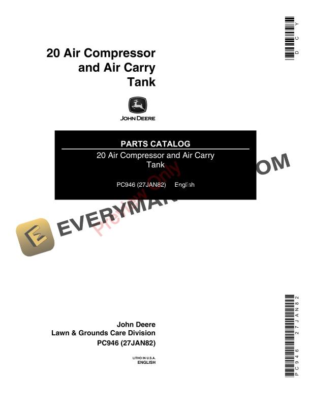 John Deere 20 Air Compressor Parts Catalog PC946 27JAN82