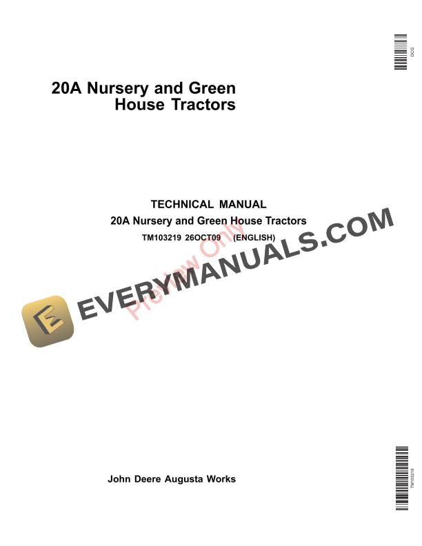 John Deere 20A Tractors Technical Manual TM103219 28APR21