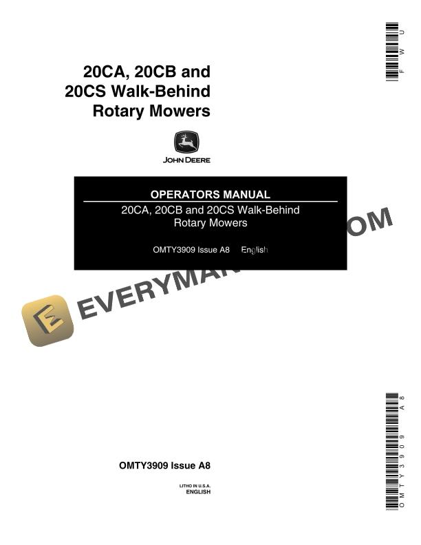 John Deere 20CA, 20CB and 20CS Walk-Behind Rotary Mowers Operator Manual OMTY3909 by manualgroup - Issuu