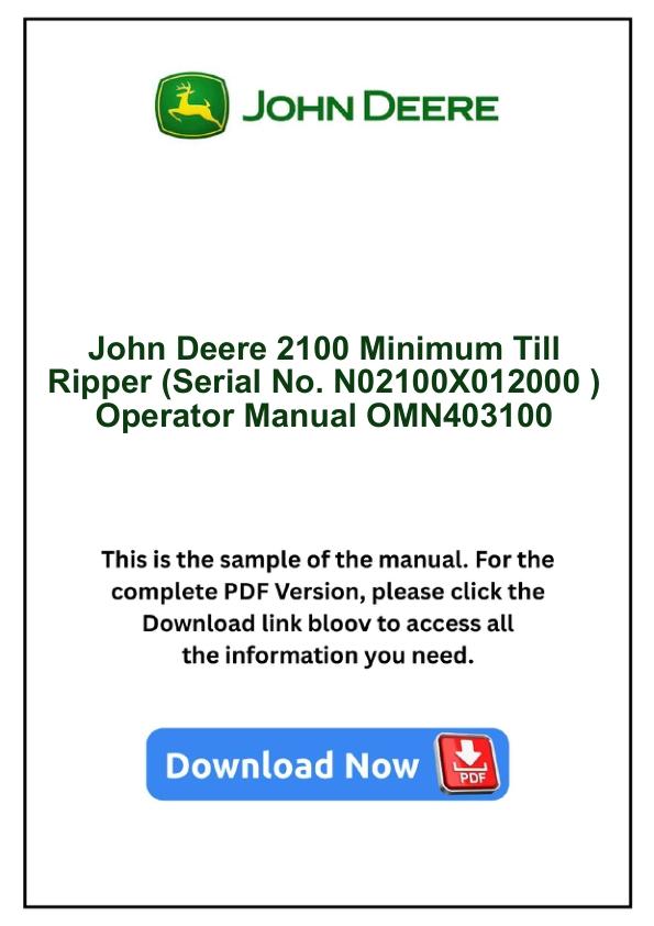 John Deere 2100 Minimum Till Ripper (Serial No. N02100X012000 ) Operator Manual OMN403100