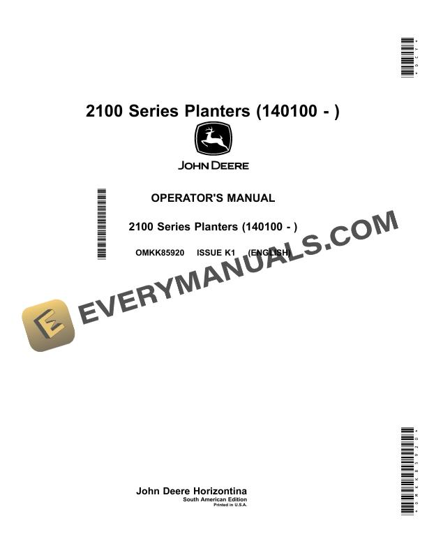 John Deere 2100 Series Planter Operator Manual OMKK85920 by manualgroup - Issuu