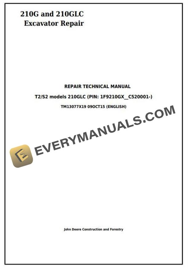 John Deere 210G210GLC Excavator Repair Technical Manual TM13077X19