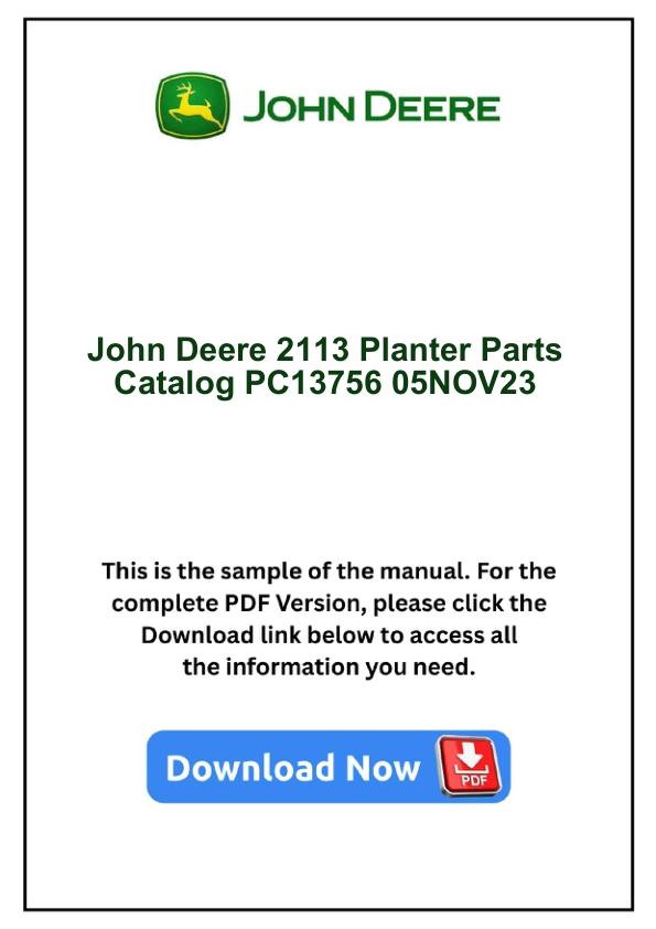 John Deere 2113 Planter Parts Catalog PC13756 05NOV23