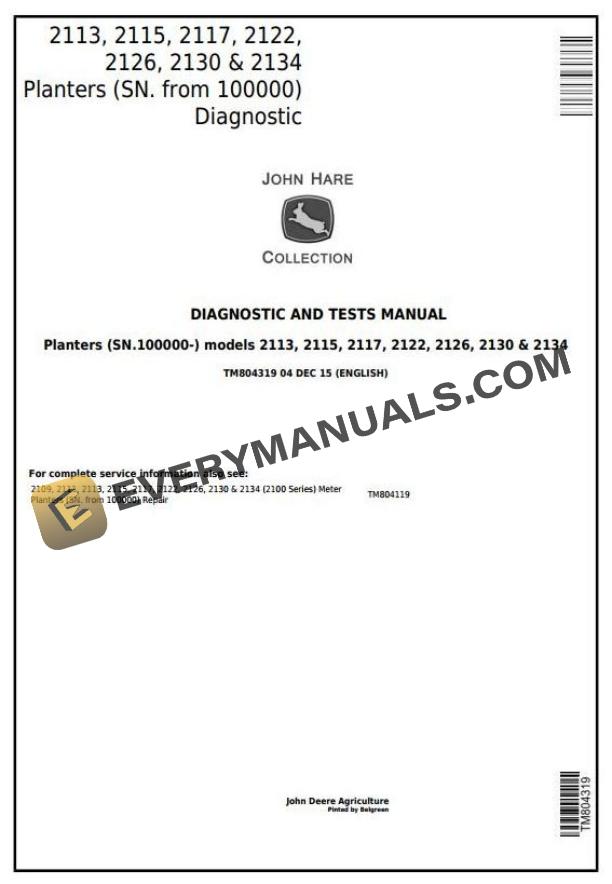 John Deere 2113 to 2134 Planter Diagnostic Test Manual TM804319 by manualgroup - Issuu