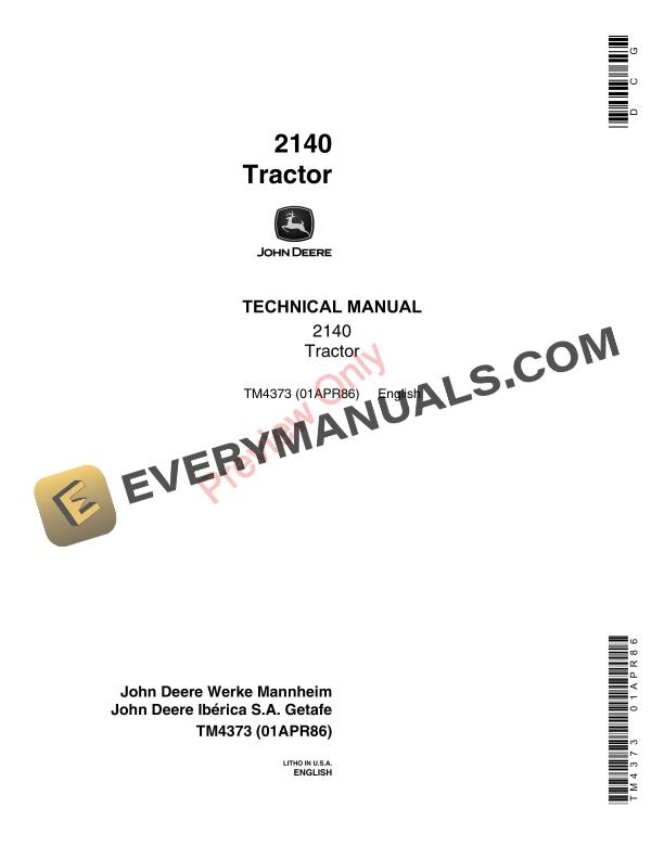 John Deere 2140 Tractor Technical Manual TM4373 01APR86 by manualgroup - Issuu