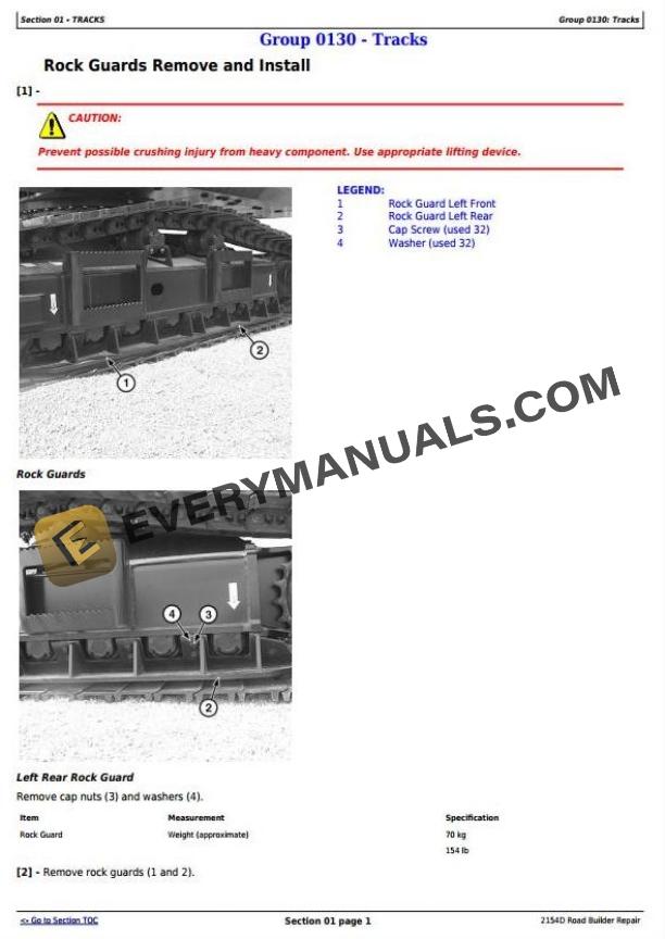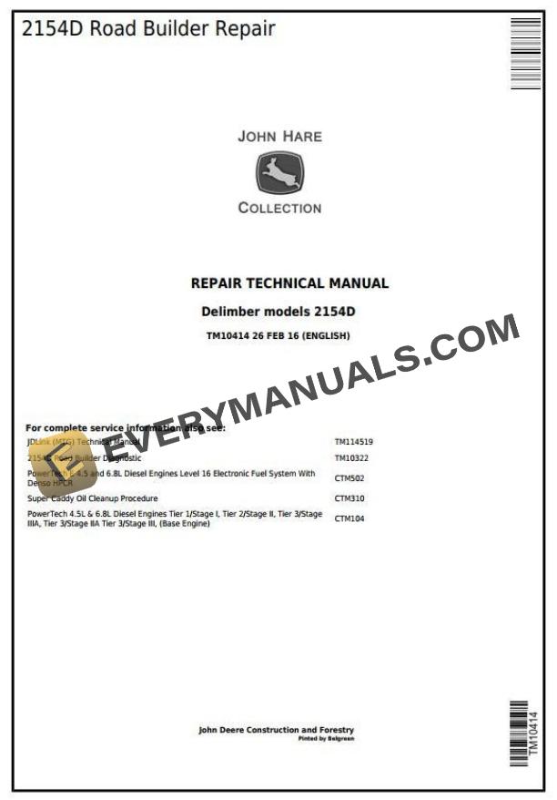 John Deere 2154D Road Builder Repair Technical Manual TM10414