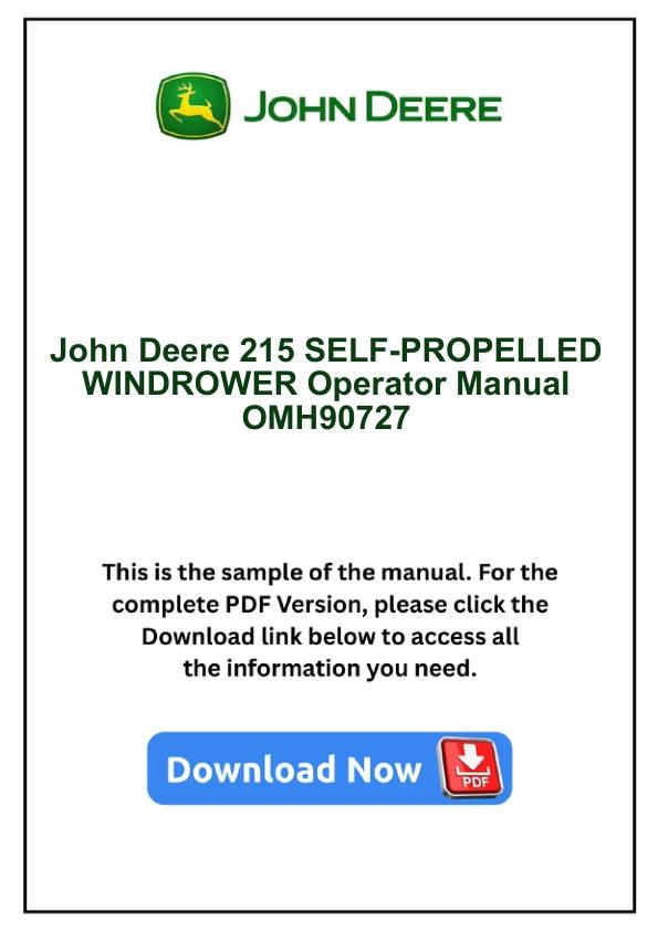 John Deere 215 SELF-PROPELLED WINDROWER Operator Manual OMH90727