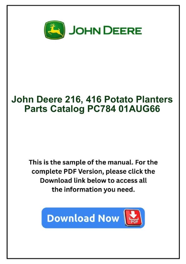John Deere 216, 416 Potato Planters Parts Catalog PC784 01AUG66