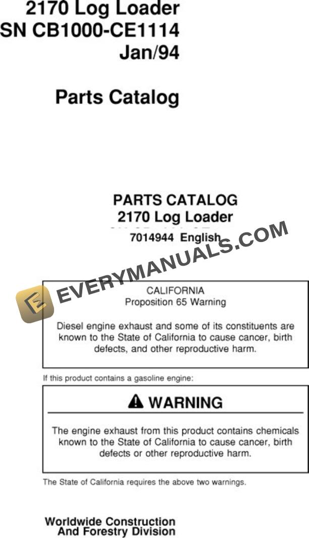 John Deere 2170 Knuckleboom Loader Parts Catalog 7014944