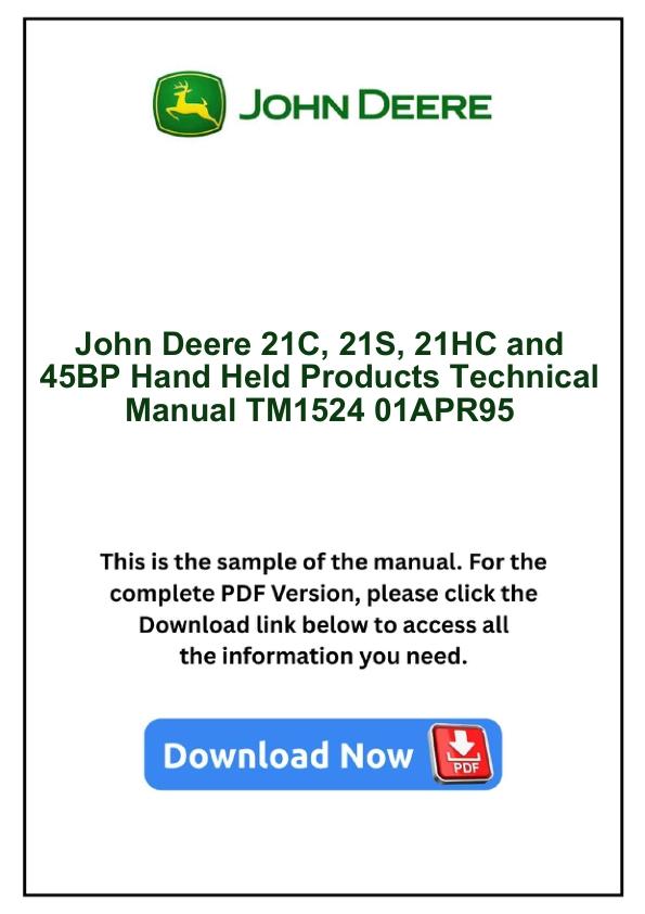 John Deere 21C, 21S, 21HC and 45BP Hand Held Products Technical Manual TM1524 01APR95