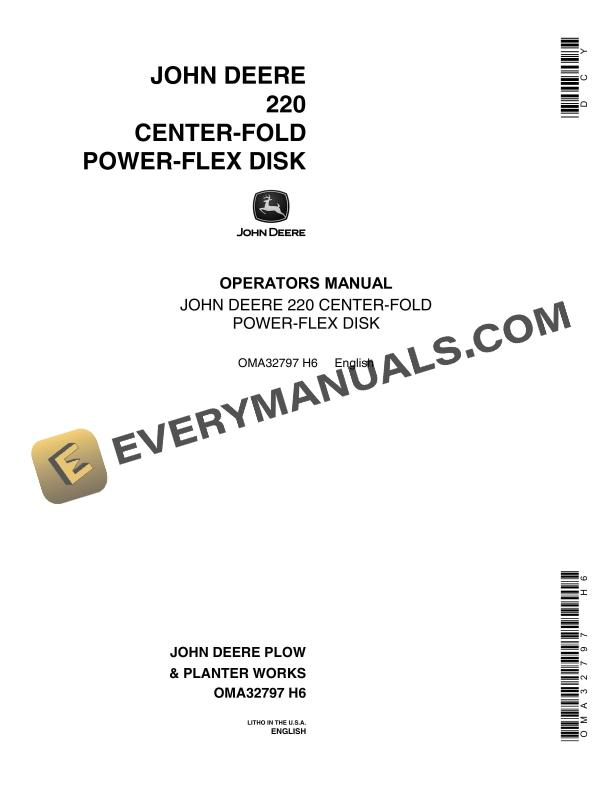 John Deere 220 CENTER-FOLD POWER-FLEX DISK Operator Manual OMA32797