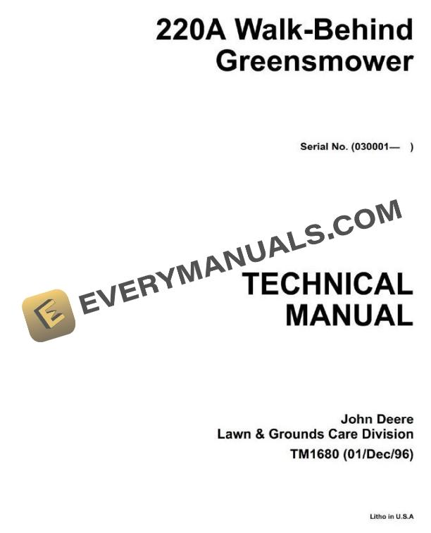 John Deere 220A Walk-Behind Greensmower Technical Manual TM1680