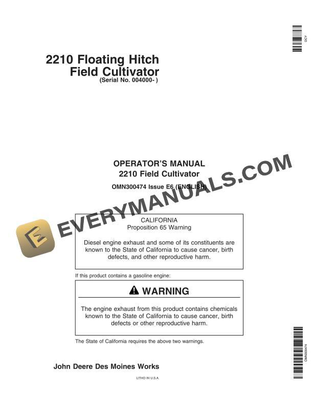 John Deere 2210 Floating Hitch Field Cultivator Operator Manual OMN300474 by manualgroup - Issuu