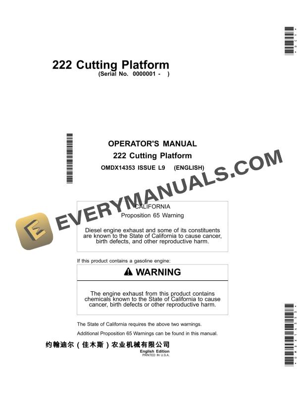John Deere 222 Cutting Platform Operator Manual OMDX14353 by manualgroup - Issuu