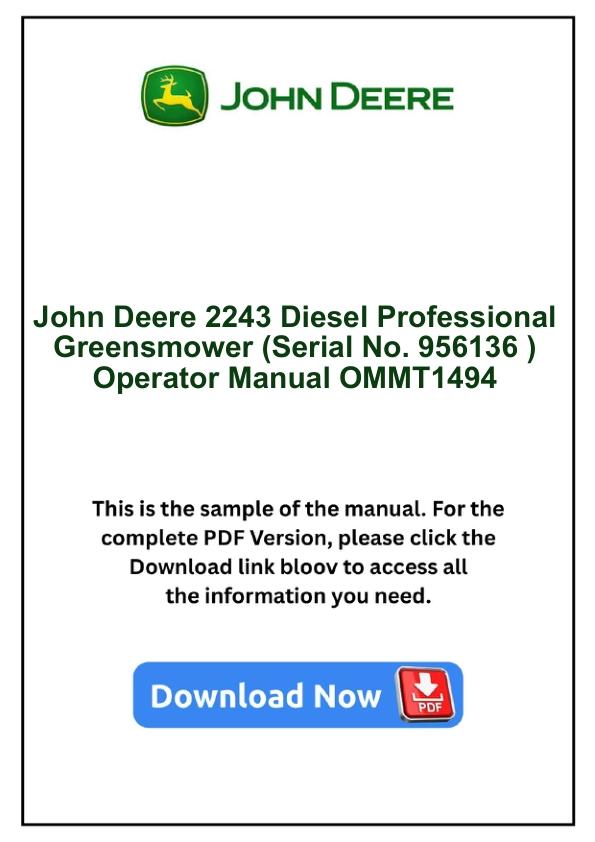 John Deere 2243 Diesel Professional Greensmower (Serial No. 956136 ) Operator Manual OMMT1494