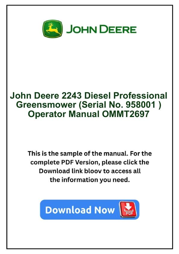 John Deere 2243 Diesel Professional Greensmower (Serial No. 958001 ) Operator Manual OMMT2697 by manualgroup - Issuu