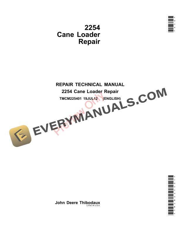 John Deere 2254 Sugarcane Loader Technical Manual TMCM225401 19JUL12