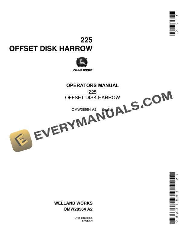 John Deere 225 OFFSET DISK HARROWS Operator Manual OMW28564
