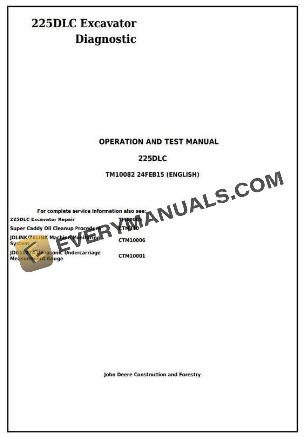 John Deere 225DLC Excavator Diagnostic Operation Test Manual TM10082