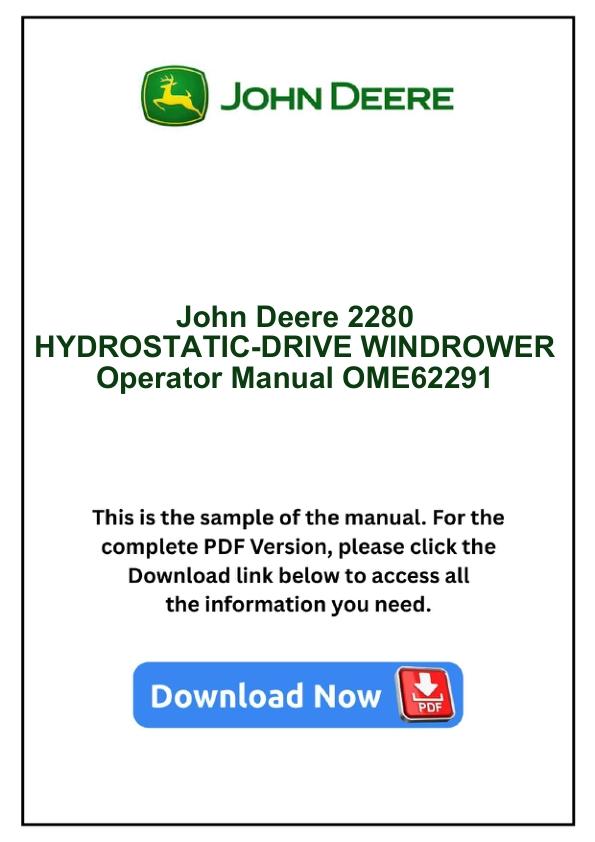 John Deere 2280 HYDROSTATIC-DRIVE WINDROWER Operator Manual OME62291