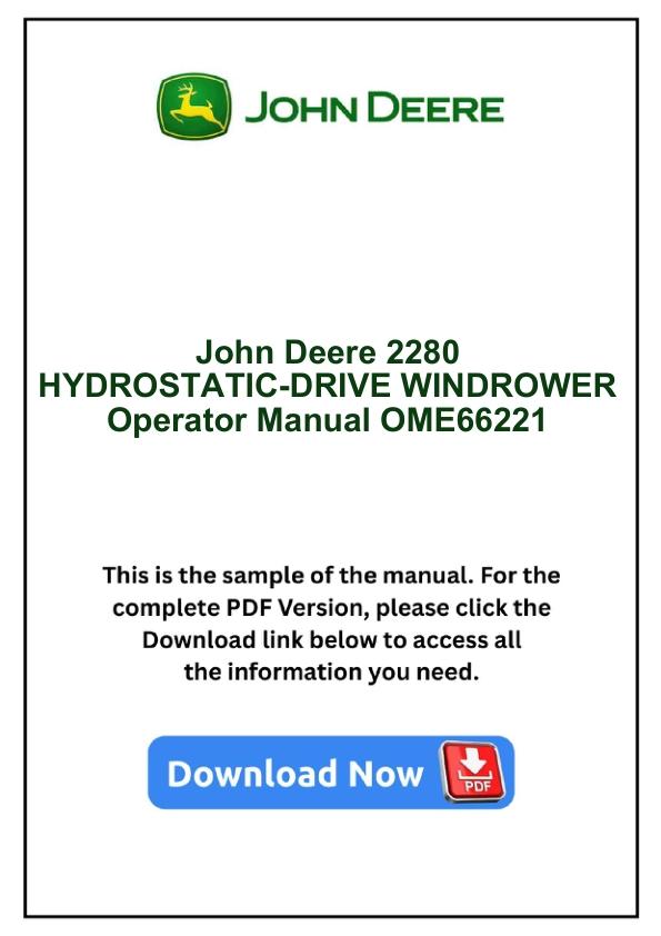 John Deere 2280 HYDROSTATIC-DRIVE WINDROWER Operator Manual OME66221 by manualgroup - Issuu